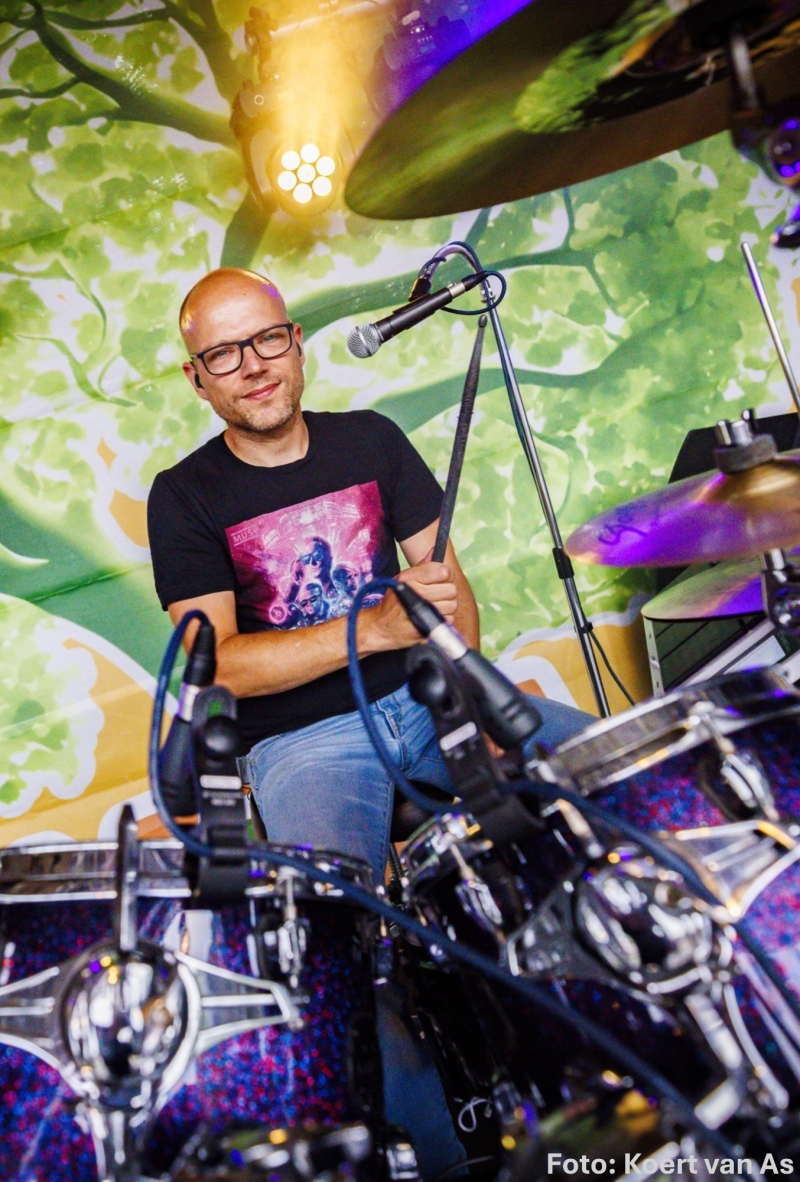Stille kracht maar nooit op de voorgrond. Deze voormalig harmonie-drummer is vanaf het eerste uur verantwoordelijk voor het tempo van Frontaal. Dubbele bass roffels, breakbeats en een opvallend uiterlijk heeft hij niet nodig om ons te leiden. Doeltreffend en strak neemt hij zijn bandleden bij de hand en zorgt hij er voor dat we altijd op tijd thuis komen...... maar nooit te vroeg! Zijn geheime wapen? Hij kan het ook met een Cajon en daar heb je echt Cojones voor nodig!!! Daarnaast is zijn vocale bijdrage bij Frontaal echt ongehoord en dat maakt Jaap tot de stabiele factor.